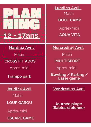 Rejoignez nos stages sportifs lors des vacances scolaire, du lundi au vendredi !