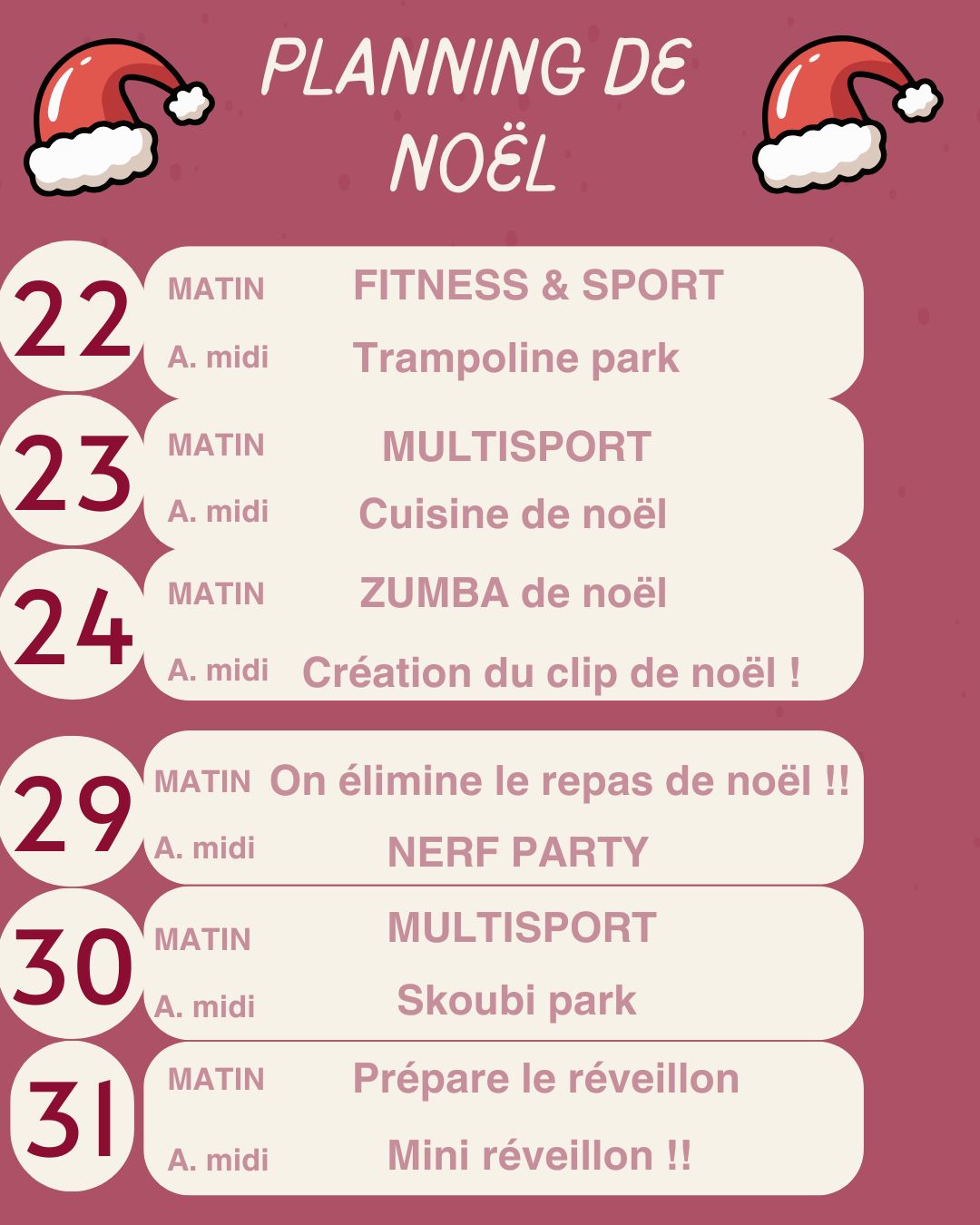 Chaque vacances scolaires nous vous proposons des stages ludiques et sportifs du Lundi au mercredi de 8h à 18h !